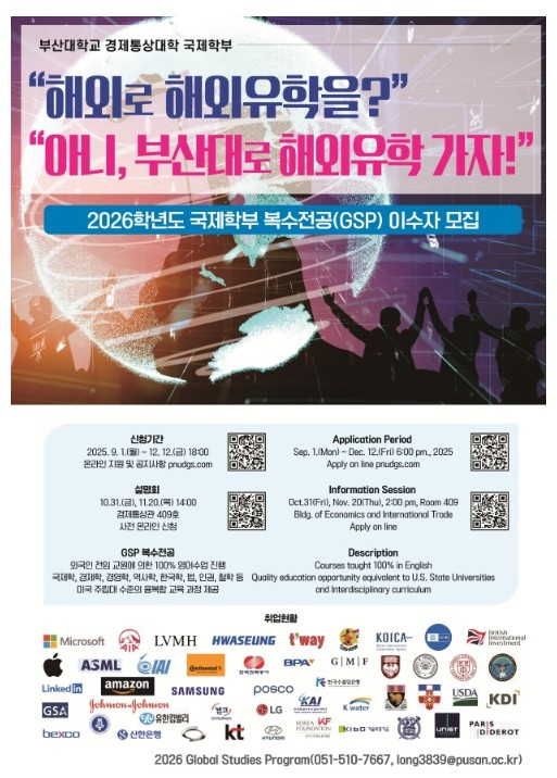 fnctId=bbs,fnctNo=4167 [홍보·안내] 2026학년도 국제학부 복수전공(Global Studies Program) 이수자 선발공고 date 2025.11.25 name 고고학과 e-mail view 31 첨부파일 선발공고문 1부.pdf 미리보기 말머리 분류 전체 학사 졸업 장학·멘토링 취업 내규 교류·파견 홍보·안내 RSS 2.0 2997 건 게시물 검색 검색하기 제목 작성자 게시글 리스트 공지사항 번호 제목 작성일 첨부파일 조회수 전체공지 부산대학교 교직원 사칭 사기 사례 전파 및 피해 예방을 위한 안내 2025.12.18 1 전체공지 시월광장 넉넉한터 잔디 보호 및 재생을 위한 사용통제 안내 2025.12.18 0 공지 2026년 2월 졸업 예정자에 대한 표준외국어능력시험 성적표 제출 마감일 안내 2025.12.18 0 전체공지 2026학년도 1학기 학·석(박)사 (통합)연계과정 학생 및 전환 희망 학생 모집 안내 2025.12.17 3 전체공지 2026학년도 1학기 휴·복학 신청 기간 안내 2025.12.17 0 공지 2026학년도 부산대학교 예비 신입생 캠퍼스 투어 신청 안내 2025.12.10 2 전체공지 [채널PNU] [알쓸부잡] EP 08. 부산대 박물관 학예사(강나리 동문) 편 안내 2025.11.27 0 전체공지 시험 질서 확립을 위한 안내문 2025.11.26 0 공지 2026년 1학기 국가장학금 1차 신청 안내 2025.11.18 2 공지 2026학년도 1학기 국가근로장학금 1차 신청 안내 2025.11.18 2 전체공지 2025학년도 겨울방학 기간 인문관 공사에 따른 시설물 사용제한 안내 2025.11.14 0 전체공지 (교육부) 대학생 해외 취업사기 피해 예방을 위한 제작 영상 안내 2025.11.10 0 전체공지 대학생 해외 취업 피해 예방을 위한 안내 2025.10.27 3 전체공지 개인형 이동장치(PM) 안전운행 수칙 안내 2025.10.21 0 전체공지 캠퍼스 내 무등록 오토바이 운행 근절을 위한 단속 시행 2025.10.13 0 전체공지 [국립대육성] 2025학년도 '잡플래닛(Job planet) 제휴 대학 서비스’ 이용 안내 2025.08.26 2 전체공지 성적증명서 내 학기별 성적백분위 정보 표기 개선 시행 알림 2025.07.09 0 공지 전공선택 교과목 수강인원 제한 및 증원 관련 안내(250731) 2025.06.23 0 공지 2025학년도 2학기 교육과정 개정(이론실습시수 변경) 안내 2025.06.23 0 전체공지 부산대학교 교직원 사칭 사기 기승 주의 당부 2025.06.12 0 전체공지 [부대신문] [효원人side] “박물관 전시는 ‘종합 예술’이죠” 장용준 동문 기사 안내 2025.06.12 0 전체공지 모바일 전용 부산대학교 스마트 앱 긴급출동[에스원] 시스템 신설 알림 2025.05.16 0 전체공지 [PNU FOCUS] 고고학과 이명훈 박사과정생 영남고고학회 우산학술상 수상 2025.04.14 0 공지 「부산대학교 학생역량 인증서」발급 시행 안내 2025.03.10 1 전체공지 [인권센터] PNU 폭력예방교육 이수 안내 2025.02.24 0 전체공지 고고학과 배진성 교수 『거석의 문화사 - 지석묘와 거석신앙 -』 저서 출간(2025. 1. 5.) 2025.02.03 0 공지 2025학년도 1학기 교육과정 개정(신설·명칭변경·이수학기 변경) 안내 2025.01.04 0 전체공지 캠퍼스 긴급상황 발생 시 행동요령 2024.08.29 0 전체공지 출석 인정에 관한 사항 안내(출석 인정 신청 기한) 2023.12.11 0 전체공지 인터넷증명발급시스템(써트피아) 이용안내 등 증명서 발급 관련 알림 2023.08.31 2 공지 학생역량지원시스템 어학 성적 업로드 방법 2023.01.10 0 공지 고고학과 학부 졸업 요건 제출 일정 안내(241114 ......) 2022.03.15 0 공지 교육과정 개정으로 인한 수강 안내(문화유산답사(Ⅰ·Ⅱ·Ⅲ) 및 디지털고고학) 2022.02.09 0 공지 고고학과 부전공 필수과목 안내 2022.01.28 0 공지 고고학과 학부 졸업 요건 안내(241114 ......) 2022.01.27 2 2997 [홍보·안내] 부산대학교 교직원 사칭 사기 사례 전파 및 피해 예방을 위한 안내 새글 2025.12.18 1 12 2996 [홍보·안내] [금정경찰서]보이스피싱 예방을 위한 안내 새글 2025.12.18 0 8 2995 [홍보·안내] [글로컬대학30] 지역민을 위한「릴레이 창업체험 교육」안내 새글 2025.12.18 1 9 2994 [홍보·안내] 시월광장 넉넉한터 잔디 보호 및 재생을 위한 사용통제 안내 새글 2025.12.18 0 7 2993 [홍보·안내] 2026년도 「병역판정검사 일자·장소 본인선택」 및 「20세 검사 후 입영」 신청 안내 새글 2025.12.18 2 9 2992 [학사] 2026년 2월 졸업 예정자에 대한 표준외국어능력시험 성적표 제출 마감일 안내 새글 2025.12.18 0 10 2991 [학사] 2026학년도 1학기 학·석(박)사 (통합)연계과정 학생 및 전환 희망 학생 모집 안내 새글 2025.12.17 3 58 2990 [홍보·안내] 표절예방프로그램 ‘턴잇인(Turnitin)’ 클래스 변경 이용 안내 새글 2025.12.17 1 12 2989 [홍보·안내] 'KT AIVLE School 9기' 참가 우수 교육생 추천 안내 새글 2025.12.17 3 12 2988 [학사] 2026학년도 1학기 휴·복학 신청 기간 안내 새글 2025.12.17 0 15 2987 [교류·파견] 2026학년도 1학기 정규학기 해외파견 자비 프로그램 선발 안내 새글 2025.12.17 3 12 2986 [홍보·안내] 2026 新조선통신사 - 유스(Youth) 조선통신사 한일 대학생 교류사업 안내 새글 2025.12.17 1 19 2985 [취업] 한국수력원자력 2025 하반기 채용상담회 안내(12_15_월) 새글 2025.12.15 0 25 2984 [홍보·안내] [HUSS} 디지털 고고학 국내와 사례와 미래 전망 특강 안내 2025.12.12 0 24 2983 [홍보·안내] 2025학년도 2학기 기말고사 기간에 따른 방문 제한 안내(12/15~12/19) 2025.12.12 0 23 2982 [홍보·안내] 2026학년도 수시전형 합격자 대상「PNU Pre-start Program」운영 안내 2025.12.12 1 28 2981 [홍보·안내] 2025년도 교육