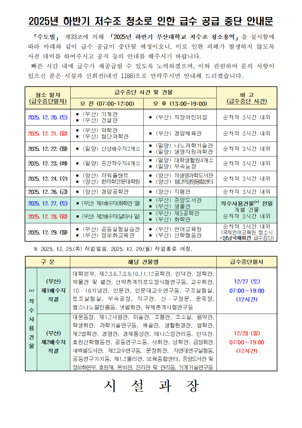 fnctId=bbs,fnctNo=4167 [홍보·안내] 2025년 하반기 저수조 청소로 인한 급수 공급 중단 안내문 date 2025.11.27 name 고고학과 e-mail view 22 첨부파일 첨부파일이(가) 없습니다. 말머리 분류 전체 학사 졸업 장학·멘토링 취업 내규 교류·파견 홍보·안내 RSS 2.0 2997 건 게시물 검색 검색하기 제목 작성자 게시글 리스트 공지사항 번호 제목 작성일 첨부파일 조회수 전체공지 부산대학교 교직원 사칭 사기 사례 전파 및 피해 예방을 위한 안내 2025.12.18 1 전체공지 시월광장 넉넉한터 잔디 보호 및 재생을 위한 사용통제 안내 2025.12.18 0 공지 2026년 2월 졸업 예정자에 대한 표준외국어능력시험 성적표 제출 마감일 안내 2025.12.18 0 전체공지 2026학년도 1학기 학·석(박)사 (통합)연계과정 학생 및 전환 희망 학생 모집 안내 2025.12.17 3 전체공지 2026학년도 1학기 휴·복학 신청 기간 안내 2025.12.17 0 공지 2026학년도 부산대학교 예비 신입생 캠퍼스 투어 신청 안내 2025.12.10 2 전체공지 [채널PNU] [알쓸부잡] EP 08. 부산대 박물관 학예사(강나리 동문) 편 안내 2025.11.27 0 전체공지 시험 질서 확립을 위한 안내문 2025.11.26 0 공지 2026년 1학기 국가장학금 1차 신청 안내 2025.11.18 2 공지 2026학년도 1학기 국가근로장학금 1차 신청 안내 2025.11.18 2 전체공지 2025학년도 겨울방학 기간 인문관 공사에 따른 시설물 사용제한 안내 2025.11.14 0 전체공지 (교육부) 대학생 해외 취업사기 피해 예방을 위한 제작 영상 안내 2025.11.10 0 전체공지 대학생 해외 취업 피해 예방을 위한 안내 2025.10.27 3 전체공지 개인형 이동장치(PM) 안전운행 수칙 안내 2025.10.21 0 전체공지 캠퍼스 내 무등록 오토바이 운행 근절을 위한 단속 시행 2025.10.13 0 전체공지 [국립대육성] 2025학년도 '잡플래닛(Job planet) 제휴 대학 서비스’ 이용 안내 2025.08.26 2 전체공지 성적증명서 내 학기별 성적백분위 정보 표기 개선 시행 알림 2025.07.09 0 공지 전공선택 교과목 수강인원 제한 및 증원 관련 안내(250731) 2025.06.23 0 공지 2025학년도 2학기 교육과정 개정(이론실습시수 변경) 안내 2025.06.23 0 전체공지 부산대학교 교직원 사칭 사기 기승 주의 당부 2025.06.12 0 전체공지 [부대신문] [효원人side] “박물관 전시는 ‘종합 예술’이죠” 장용준 동문 기사 안내 2025.06.12 0 전체공지 모바일 전용 부산대학교 스마트 앱 긴급출동[에스원] 시스템 신설 알림 2025.05.16 0 전체공지 [PNU FOCUS] 고고학과 이명훈 박사과정생 영남고고학회 우산학술상 수상 2025.04.14 0 공지 「부산대학교 학생역량 인증서」발급 시행 안내 2025.03.10 1 전체공지 [인권센터] PNU 폭력예방교육 이수 안내 2025.02.24 0 전체공지 고고학과 배진성 교수 『거석의 문화사 - 지석묘와 거석신앙 -』 저서 출간(2025. 1. 5.) 2025.02.03 0 공지 2025학년도 1학기 교육과정 개정(신설·명칭변경·이수학기 변경) 안내 2025.01.04 0 전체공지 캠퍼스 긴급상황 발생 시 행동요령 2024.08.29 0 전체공지 출석 인정에 관한 사항 안내(출석 인정 신청 기한) 2023.12.11 0 전체공지 인터넷증명발급시스템(써트피아) 이용안내 등 증명서 발급 관련 알림 2023.08.31 2 공지 학생역량지원시스템 어학 성적 업로드 방법 2023.01.10 0 공지 고고학과 학부 졸업 요건 제출 일정 안내(241114 ......) 2022.03.15 0 공지 교육과정 개정으로 인한 수강 안내(문화유산답사(Ⅰ·Ⅱ·Ⅲ) 및 디지털고고학) 2022.02.09 0 공지 고고학과 부전공 필수과목 안내 2022.01.28 0 공지 고고학과 학부 졸업 요건 안내(241114 ......) 2022.01.27 2 2997 [홍보·안내] 부산대학교 교직원 사칭 사기 사례 전파 및 피해 예방을 위한 안내 새글 2025.12.18 1 12 2996 [홍보·안내] [금정경찰서]보이스피싱 예방을 위한 안내 새글 2025.12.18 0 8 2995 [홍보·안내] [글로컬대학30] 지역민을 위한「릴레이 창업체험 교육」안내 새글 2025.12.18 1 9 2994 [홍보·안내] 시월광장 넉넉한터 잔디 보호 및 재생을 위한 사용통제 안내 새글 2025.12.18 0 7 2993 [홍보·안내] 2026년도 「병역판정검사 일자·장소 본인선택」 및 「20세 검사 후 입영」 신청 안내 새글 2025.12.18 2 9 2992 [학사] 2026년 2월 졸업 예정자에 대한 표준외국어능력시험 성적표 제출 마감일 안내 새글 2025.12.18 0 11 2991 [학사] 2026학년도 1학기 학·석(박)사 (통합)연계과정 학생 및 전환 희망 학생 모집 안내 새글 2025.12.17 3 59 2990 [홍보·안내] 표절예방프로그램 ‘턴잇인(Turnitin)’ 클래스 변경 이용 안내 새글 2025.12.17 1 12 2989 [홍보·안내] 'KT AIVLE School 9기' 참가 우수 교육생 추천 안내 새글 2025.12.17 3 12 2988 [학사] 2026학년도 1학기 휴·복학 신청 기간 안내 새글 2025.12.17 0 15 2987 [교류·파견] 2026학년도 1학기 정규학기 해외파견 자비 프로그램 선발 안내 새글 2025.12.17 3 12 2986 [홍보·안내] 2026 新조선통신사 - 유스(Youth) 조선통신사 한일 대학생 교류사업 안내 새글 2025.12.17 1 20 2985 [취업] 한국수력원자력 2025 하반기 채용상담회 안내(12_15_월) 새글 2025.12.15 0 25 2984 [홍보·안내] [HUSS} 디지털 고고학 국내와 사례와 미래 전망 특강 안내 2025.12.12 0 25 2983 [홍보·안내] 2025학년도 2학기 기말고사 기간에 따른 방문 제한 안내(12/15~12/19) 2025.12.12 0 23 2982 [홍보·안내] 2026학년도 수시전형 합격자 대상「PNU Pre-start Program」운영 안내 2025.12.12 1 28 2981 [홍보·안내] 2025년도 교육시설 이용