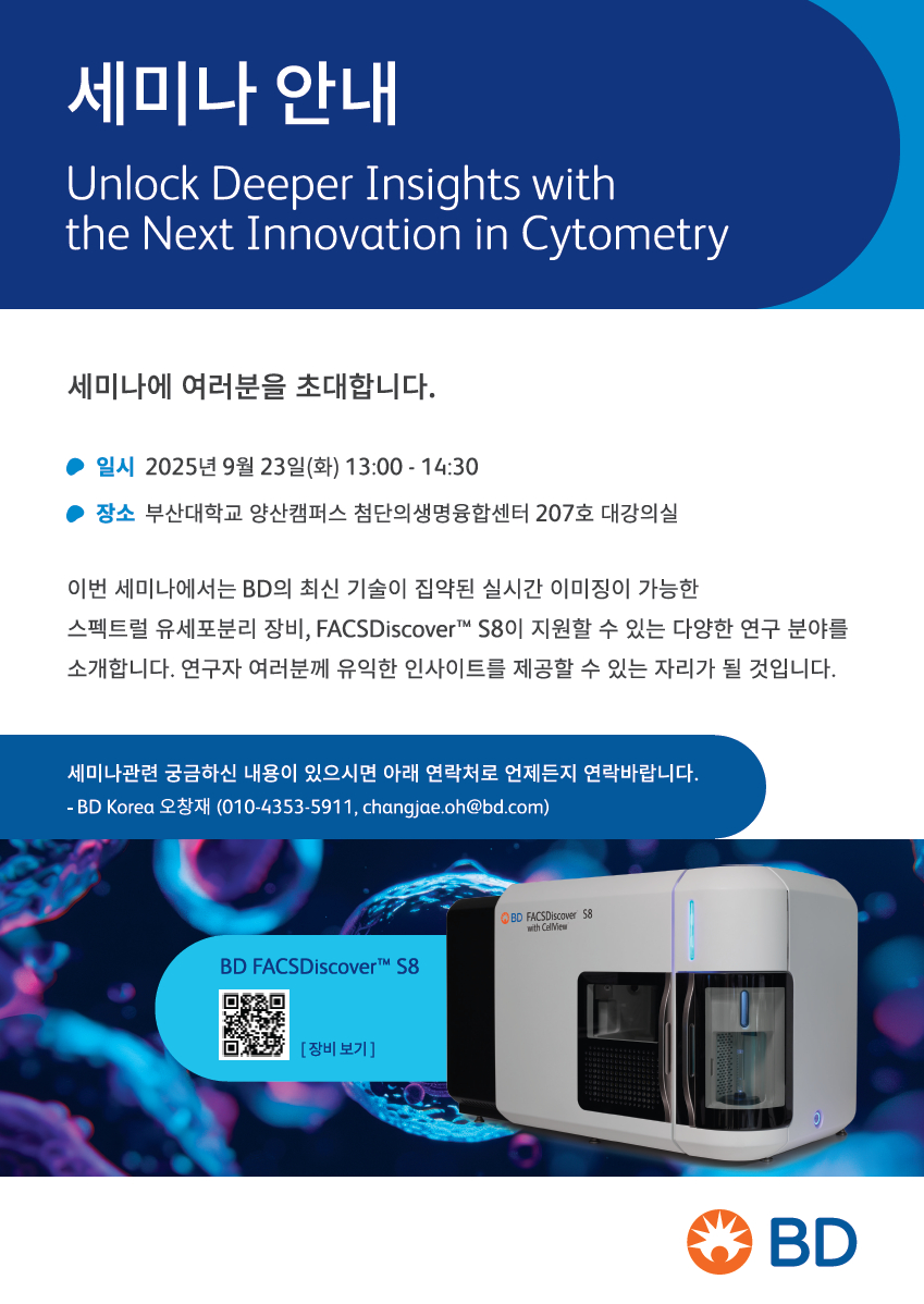 fnctId=bbs,fnctNo=16619 [홍보·안내] [공동실험실습관]양산분관 신규 첨단 기자재 구축 장비(실시간 이미징 스펙트럴 유세포 분리기) 세미나 개최 안내 date 2025.09.18 name 고고학과 e-mail view 14 첨부파일 첨부파일이(가) 없습니다.