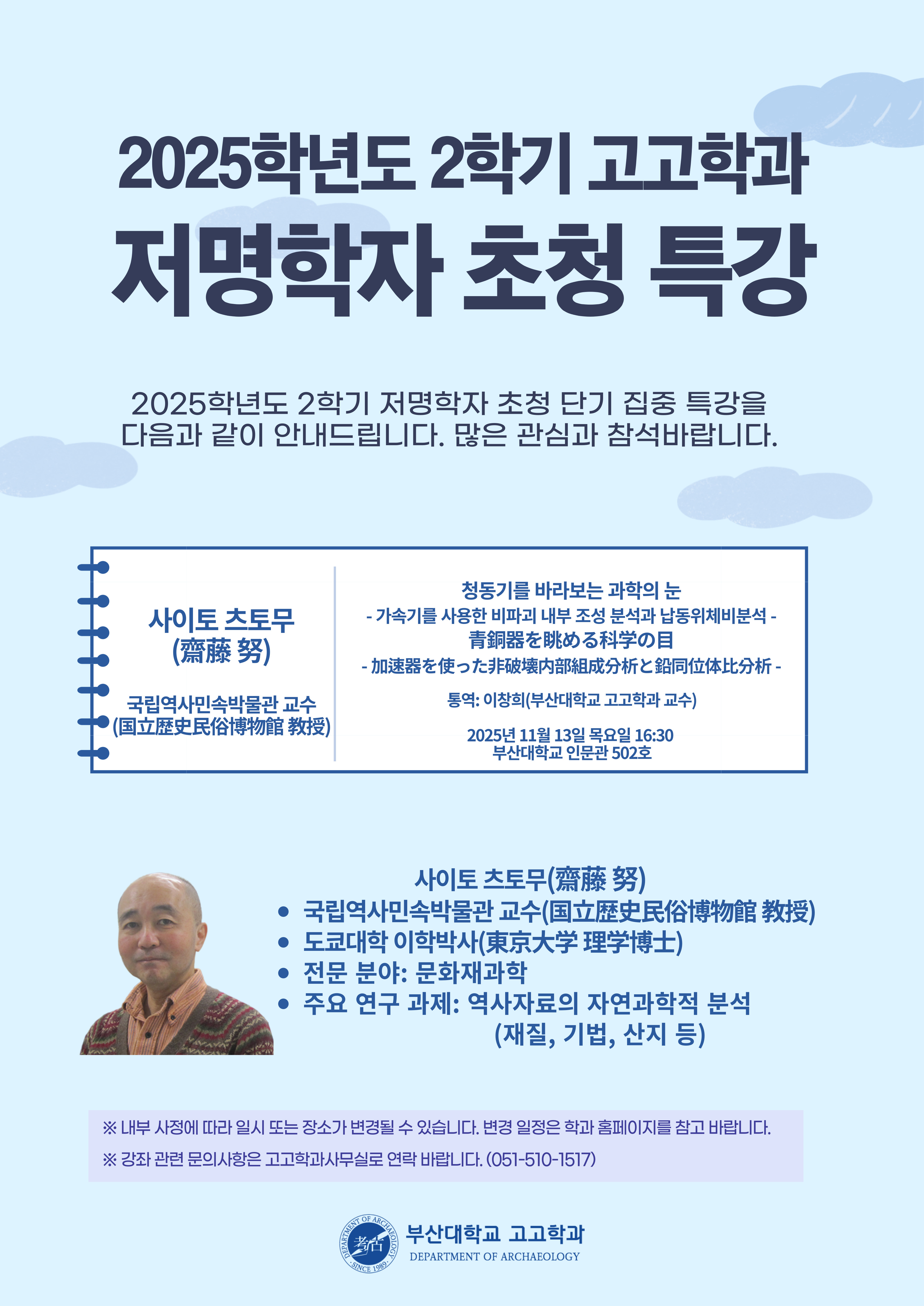 fnctId=bbs,fnctNo=16619 [홍보·안내] 2025학년도 2학기 고고학과 저명학자 초청 특강 안내(11/13) date 2025.11.11 name 고고학과 e-mail view 19 첨부파일 첨부파일이(가) 없습니다.